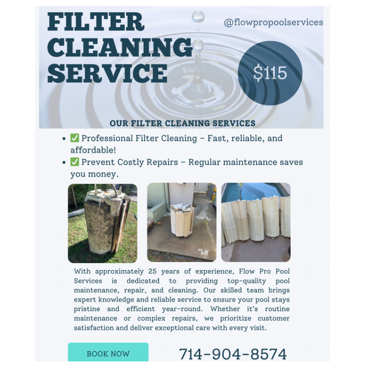 Flow Pro Pool Service offers pool cleaning, maintenance, and repair in Placentia, CA. We handle everything from chemical balancing and filter cleaning to equipment repairs and green pool cleanups. Let us keep your pool sparkling clean so you can relax and enjoy it.